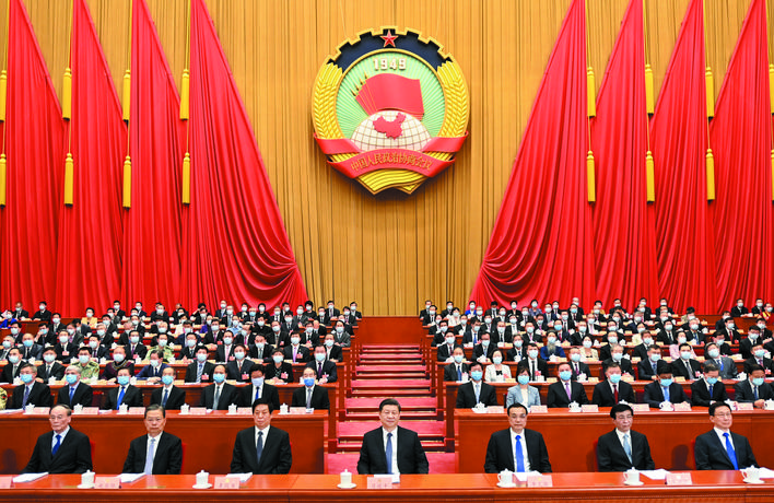 5月21日,中国人民政治协商会议第十三届全国委员会第三次会议在北京人民大会堂开幕。这是习近平、李克强、栗战书、王沪宁、赵乐际、韩正、王岐山在主席台就座。 新华社记者 李学仁 摄
