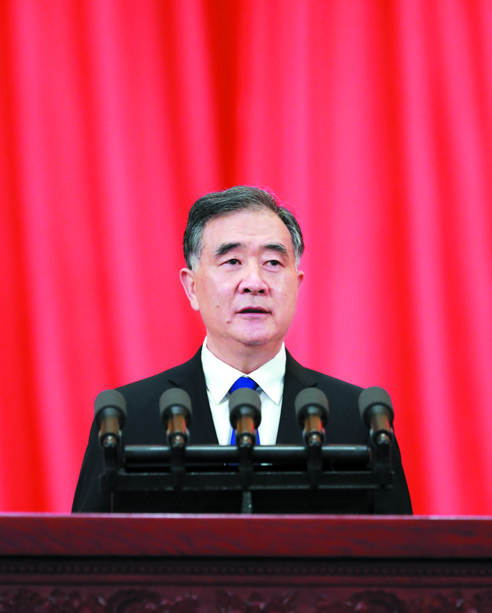 汪洋代表政协第十三届全国委员会常务委员会,向大会报告工作。