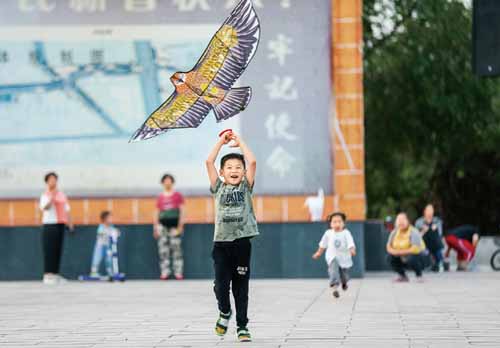 把增进人民福祉、促进人的全面发展作为一切工作的出发点和落脚点,是高质量发展的价值体现。山西省稷山县打造富有稷山特色的魅力城市,建设集生态、休闲、娱乐为一体的绿色生态公园,进一步提升市民游园的获得感幸福感。图为2020年5月16日,稷山县民乐园广场不少市民带着孩子前来游玩,感受初夏好时光。 人民图片 史云平/摄