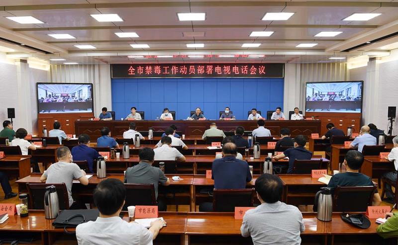全市禁毒工作动员部署电视电话会议。刘纪森 摄