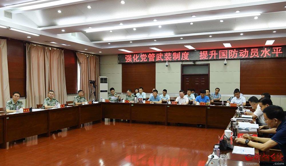 曲君传达省委议军会议精神,汇报国防动员和后备力量建设情况。刘纪森 摄