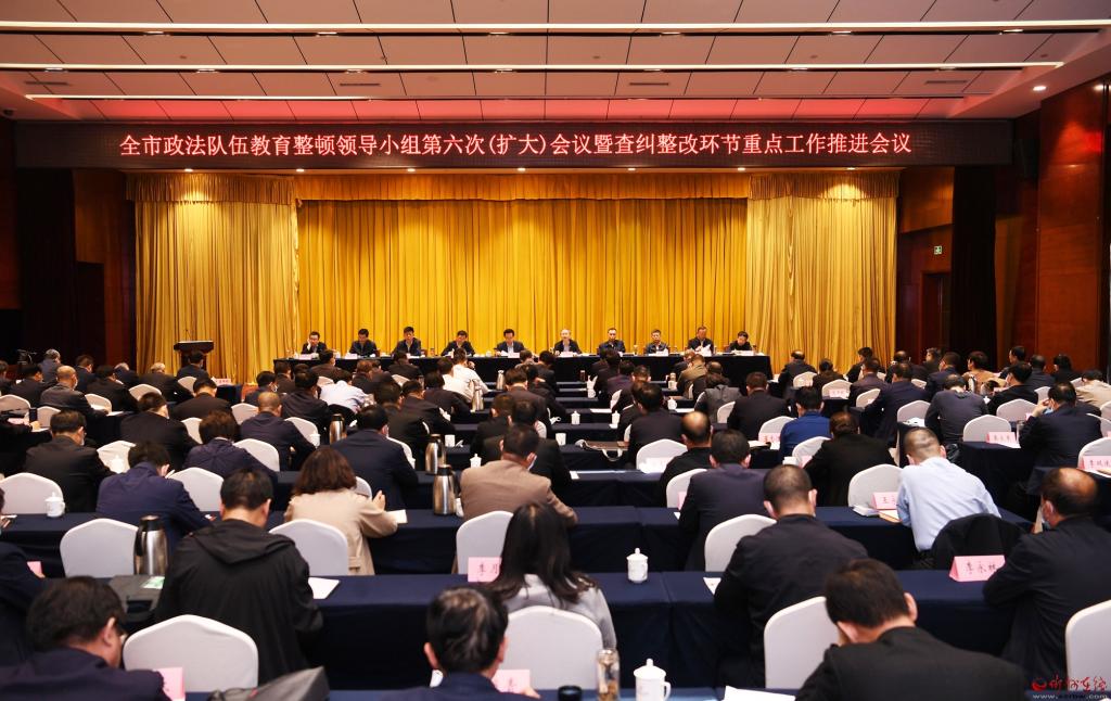 本报讯 (记者杨峰雷)4月20日,市委召开市政法队伍教育整顿领导小组第六次(扩大)会议暨查纠整改环节重点工作推进会议。省政法队伍教育整顿第四驻点指导组组长贾明建讲话。市委书记、市政法队伍教育整顿领导小组组长郑连生主持并讲话。市委副书记、政法委书记、宣传部长、市政法队伍教育整顿领导小组常务副组长郭奔胜安排部署查纠整改环节重点工作。省政法队伍教育整顿第四驻点指导组副组长蔚崇通、刘银祥出席会议。市委常委、纪委书记、监委主任、市政法队伍教育整顿领导小组副组长刘卓良传达省政法队伍教育整顿领导小组第三次会议暨查纠整改环节重点工作推进会精神。市领导温建军、崔向松、袁小波以及市中级人民法院院长刘硕才、市人民检察院检察长周东曙分别发言并安排相关工作。
