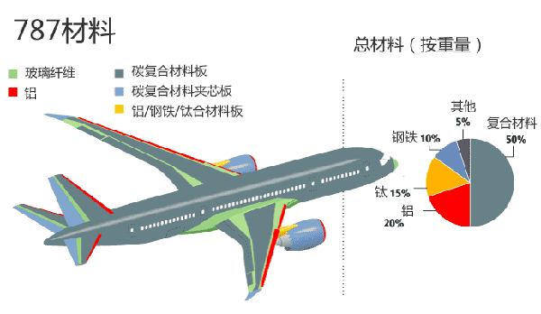 787飞机的碳纤维复合材料使用量占到了全机体积的80%。从航空领域到汽车工业上的应用,碳纤维复合材料对于工程产品的关键意义就在于轻质高强。汽车上常用的碳纤维增强树脂基复合材料的密度为1.5-2.0g/立方厘米,这只有普通碳钢的1/4-1/5,比常用的铝合金还要轻1/3左右,但碳纤维复合材料的机械性能优于金属材料,其抗拉强度高于钢材3-4倍,刚度高于钢材2-3倍。