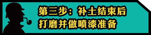 补土的配件包括砂纸和刮板。首先将补土挤在刮板上,然后再划痕处进行刮涂,先是进行薄薄的一层,让后要晾干3-5分钟,之后再刮涂一层,再晾干,重复几次,直到划痕凹陷处被填平。等10-15分钟左右补土完全干燥,之后用800的砂纸沾一些水将补土处进行再次打磨平整。