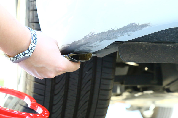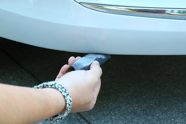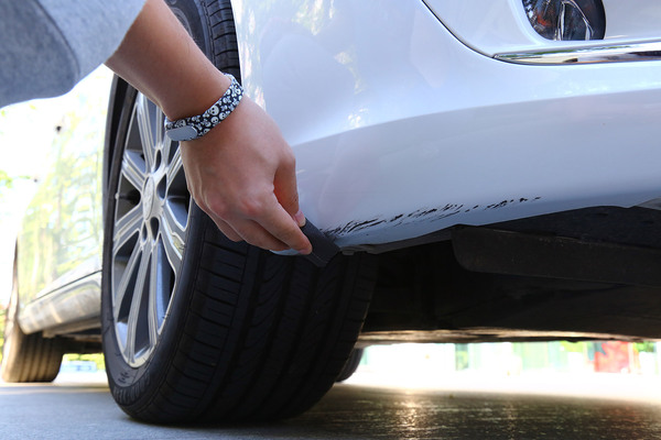 我们找来一辆前保险杠底部被蹭得面目全非的可怜车,在选择补漆工具时要根据划痕的情况进行合理选择,不过就算是最严重的大面积伤及底漆的修补套装,一般也不超过百元。