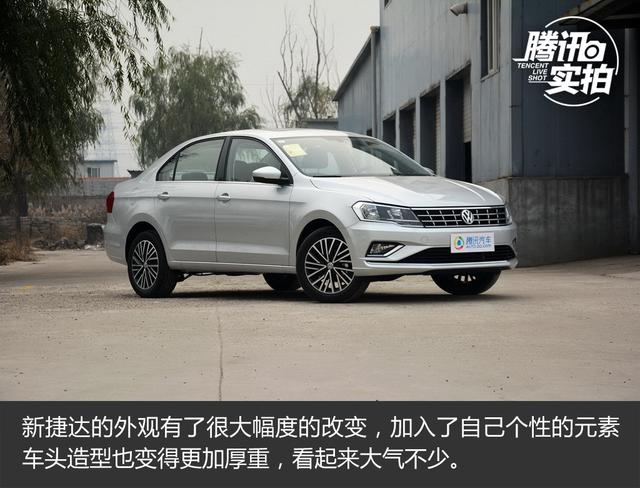 新捷达的外观有了很大幅度的改变,加入了自己个性的元素,车头造型也变得更加厚重,看起来大气不少。增大了进气格栅的的面积,两侧与大灯相连有效地增强了前脸的横向视觉效果。而内部横竖相连的镀铬装饰,看上去和上汽大众的车型很像。发动机盖的棱线比以往更加清晰,凸显出硬朗的设计元素。棱角分明的前大灯与进气格栅融为一体,内部同样采用家族式的"双U型"结构,很好的提升了其辨识度。车牌下方的进气格栅造型也进行了改变,底部增加的镀铬饰条看着也很协调,这也算是迎合国内消费者的口味。保险杠两侧的多边形雾灯辅以镀铬饰条,看上去更显精致。