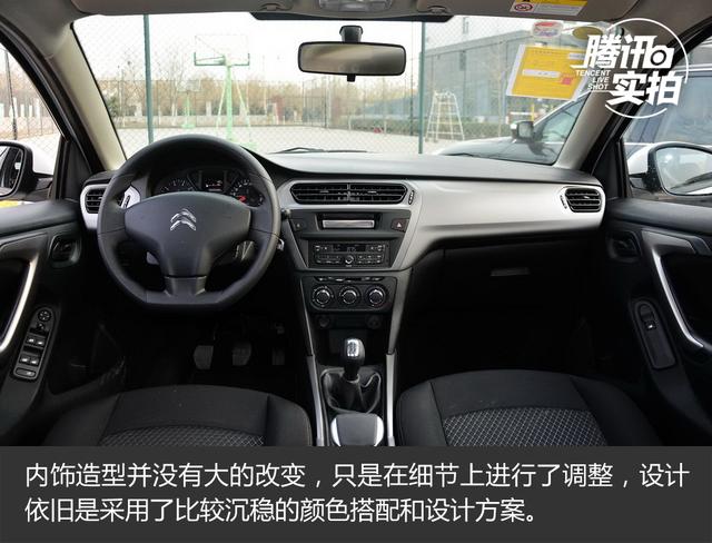 内饰造型并没有大的改变,只是在细节上进行了调整,设计依旧是采用了比较沉稳的颜色搭配和设计方案。中控台的材质还是硬塑料,做工和颜色搭配还算不错,毕竟它是一台雪铁龙的入门级车型。三幅平底方向盘造型看着令人很有好感,而且手感也不错,支持上下两向调节,并不能前后拉伸。指针式仪表盘黑底白字清晰易读,表盘上新增了雪铁龙法文LOGO和三叉星式图案,上方显示屏的颜色也从红色变为了白色。多媒体系统功能比较单一,可以提供收音机和通过底部USB接驳外部音源。