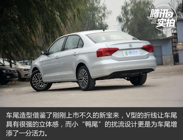 车身侧面没有做太大改变,延续了老款车型简单流畅的线条感。后视镜的造型也更富棱角,侧转向灯从翼子板移至后视镜,同时采用了LED光源。门把手采用了与车身同色的设计,上方增加的镀铬装饰条恰到好处。双色多幅轮毂是一大亮点,造型动感时尚。采用韩泰KINERGY EX轮胎,尺寸为195/55 R16。制动系统为前轮通风盘式,后轮鼓式。车尾造型借鉴了刚刚上市不久的新宝来,V型的折线让车尾具有很强的立体感,而小“鸭尾”的扰流设计更是为车尾增添了一分活力。立体造型的尾灯与车尾的折线融为一体,内部折线的造型,具有很高的辨识度。车尾的数字180代表这台车装配的是1.5L自然吸气发动机。