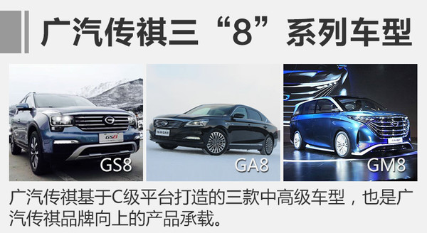 为达到“品牌向上”的效果,广汽传祺还将加大中高级车型的布局,包括旗下三“8”系列车型。其中轿车车型GA8已上市,另一款“8”系列的SUV车型GS8也已正式上市,未来还有一款MPV车型GM8。这些车型的加入,将使得广汽传祺在销量和品质上大幅提升。(图/文 网通社 姜微)