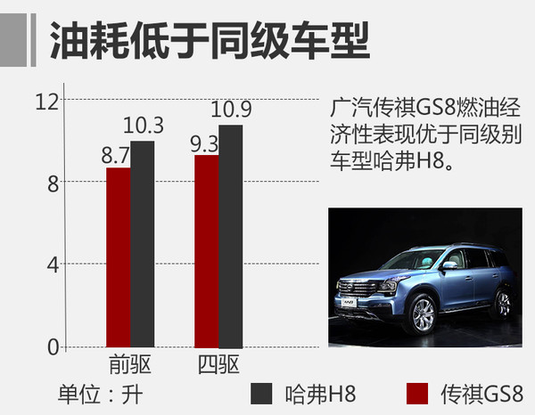 新车定位于中大型SUV,上市后将与哈弗H8等车型处于同一级别。油耗方面,通过与哈弗H8对比后发现,新车两驱与四驱车型在燃油经济性方面均具备一定优势。