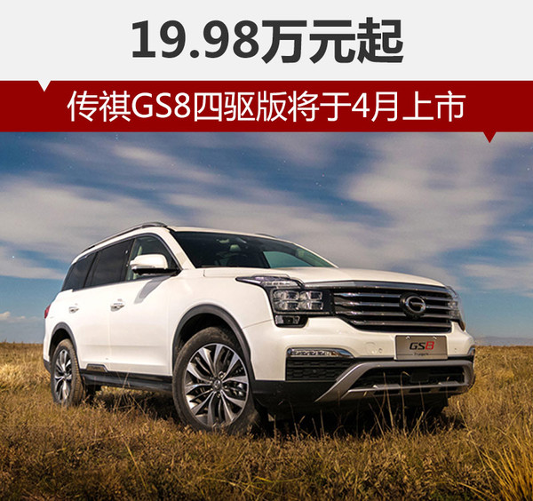 广汽传祺在推出GA8后继续完善其高端布局,推出了旗舰SUV GS8。去年10月26号,传祺GS8正式上市,先期推出四款两驱车型,而四驱车型后续上市。网通社从广汽传祺内部人士获悉,GS8四驱版将于4月上市。新车上市后将正式与长安CS95展开竞争。