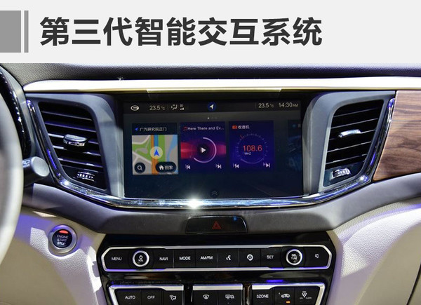 内部配置方面,传祺GS8将搭载品牌最新的第三代智能交互系统。这套系统配备了全新的智能设备,其中10.1英寸触摸液晶显示屏是主要硬件部分。在软件应用中,包括全新的组合仪表盘、智能语音控制、多媒体系统以及应用等一系列人机交互内容,这些都能够与手机端的APP相互连通。