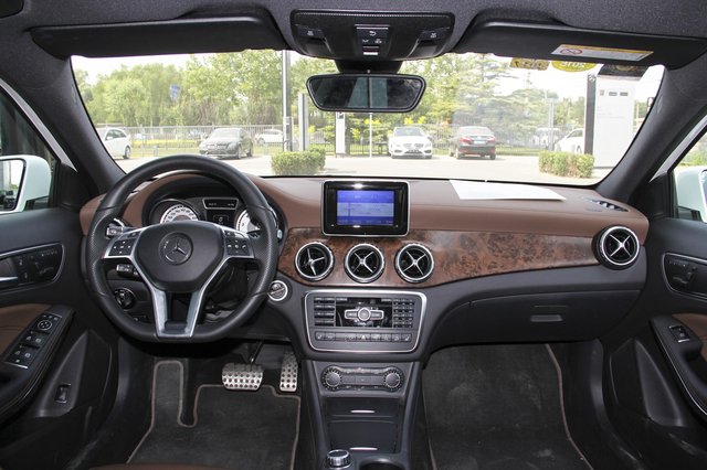 奔驰GLA的内饰设计算是比较漂亮的,只是与奔驰其他车型采用相同的风格总显得不算太有诚意。中控台采用了最新的家族风格,配以大面积银色饰板,往往能吸引到不少消费者的眼球。