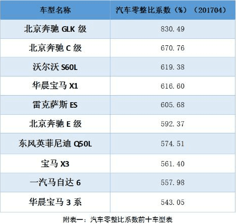 对于老百姓而言,在得知北京奔驰 GLK级配件的价格总和可以买 8辆整车时,可能也仅仅是增添了对这部分车主的“羡慕”,然而,奔驰宝马在我国说到底本就不是平民车。那么,我们就来看看 2017年一季度卖得最好的几个品牌车型的零整比系数如何,下面的数据对你买车真的有帮助呦!