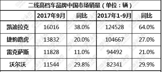 凯迪拉克超去年销量 捷豹路虎迎十万跨越