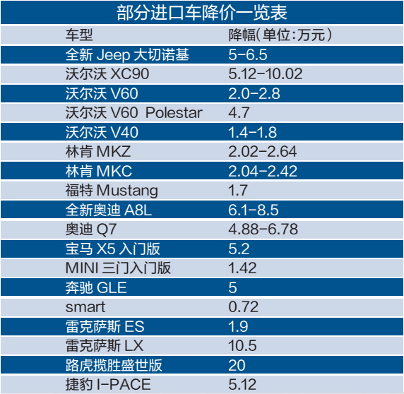 宝马在当天晚些时候也宣布了价格调整信息,宣布全系进口车价格下调。其中MINI ONE三门版、MINI COOPER ALL4 COUNTRYMAN的建议零售价分别下浮1.42万元和2.02万元,MINI ONE三门版价格下调后首次进入20万价格区间为18.88万元;包含X5、6系GT在内的车型降幅超过5万元,其中国内最畅销的豪华中大型SUV X5起售价降至69.99万元。