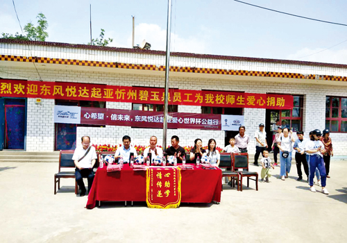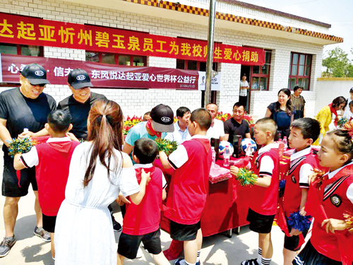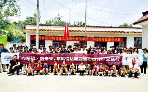 2018年6月2日“心希望信未来”东风悦达起亚世界杯公益行活动如期成功举行。本次活动由东风悦达起亚厂家冠名支持,由忻州碧玉泉公司员工、部分保有客户及家属、意向客户及媒体工作人员共60多人和代县两界沟小学全体师生共同参与。