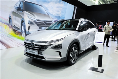 去年10月,现代汽车就在中国展出了氢燃料电池汽车现代NEXO。新京报记者 孙晓萌 摄