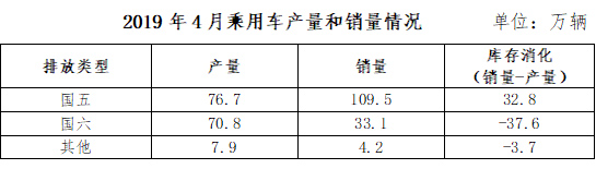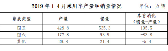中汽协发布的数据显示, 截至2019年4月份,我国乘用车库销比达3.1,远高于行业1.5的警戒线;行业整体库存约450万辆,国五车辆库存320万辆左右(占行业库存的71%),其中国六提前实施区域的国五车辆库存175-220万辆(调研企业推算得出)。
