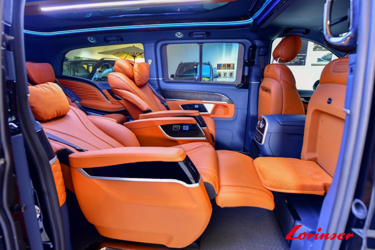 2020款Lorinser LS560MX SKABINE天幕版和天际版,整车设计完全颠覆了传统奔驰商务车的概念。在设计上融合了罗伦士90年的设计美学,以整车厂造车思路,按主机厂的造车设计,开发打造的全新车型。独家定制抗疲劳降噪地毯,天空之镜内顶,环绕流水灯,带来主动式的智能交互座舱体验。