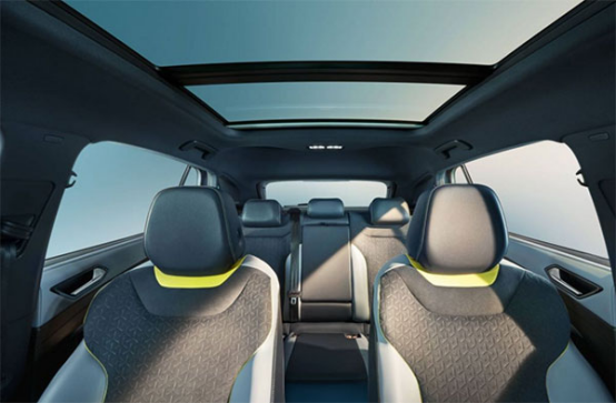 ID.4长宽高分别为4,592 mm x 1,852mm x 1,629 mm,轴距为2,765 mm。受益于MEB架构,ID.4车内空间十分宽敞,全景玻璃车顶让车内更加通透。内饰所运用的色彩和材料极具现代感,悬浮式的仪表盘与中控台采用独立式的设计,体现出极简风格。另外,车辆还设有可自定义的30色背景氛围灯,为内饰增色不少。