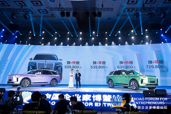 12月4日,红旗E-HS9于博鳌正式上市,共推出四款车型,定位为纯电动大型SUV,搭载四驱双电机并有两种续航模式可选。此外,新车还将配备七种驾驶模式。售价为50.98万元- 72.98万元。