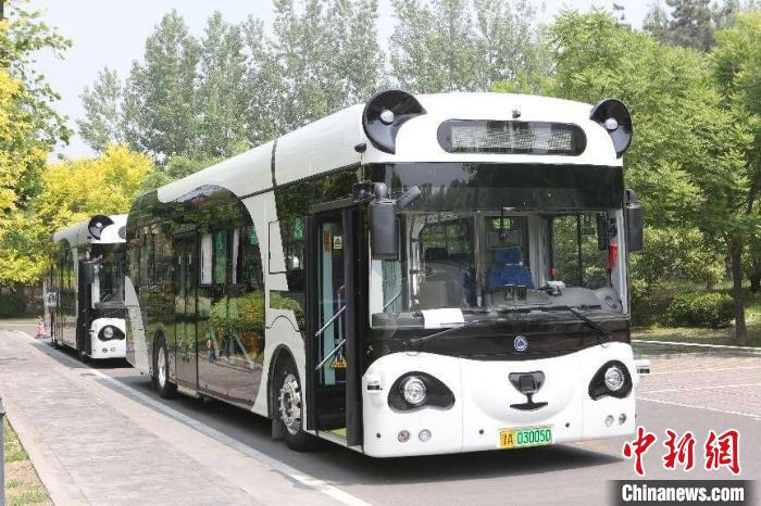“熊猫智能公交车”在中新天津生态城上路运行。 深兰科技供图