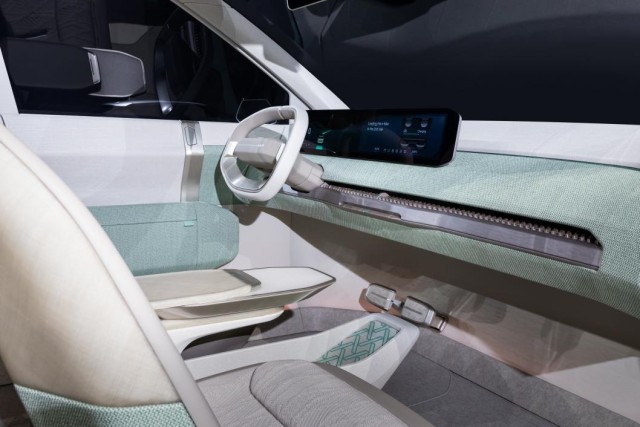 内饰方面,起亚EV3概念车内饰采用了简约的设计风格,可以看到,该车内饰并没有配备多功能按键,双辐式的方向盘搭配大尺寸连屏,以及悬浮式的座椅,更显未来感。此外,在内饰用料上,该车内饰采用了大面积的织物包裹,座椅采用环保材料,座椅设计符合人体工程学原理。