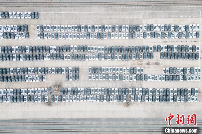 2023年7月,珞璜临港产业城内,等待发运的出口二手车。(珞璜临港产业城供图)