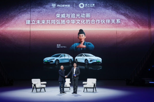 发布会上,今年大热的动画电影《长安三万里》中的人物“高适”与荣威D7的跨界合作迅速形成话题并出圈。《长安三万里》是追光动画十年成长探索和创新突破的一部里程碑式的作品,而荣威“D家族”是基于过去十年上汽荣威在新能源科技上的持续投入和创新迭代打造的新序列,双方强强联合,溯其根源,始于“进取”这一精神内核。