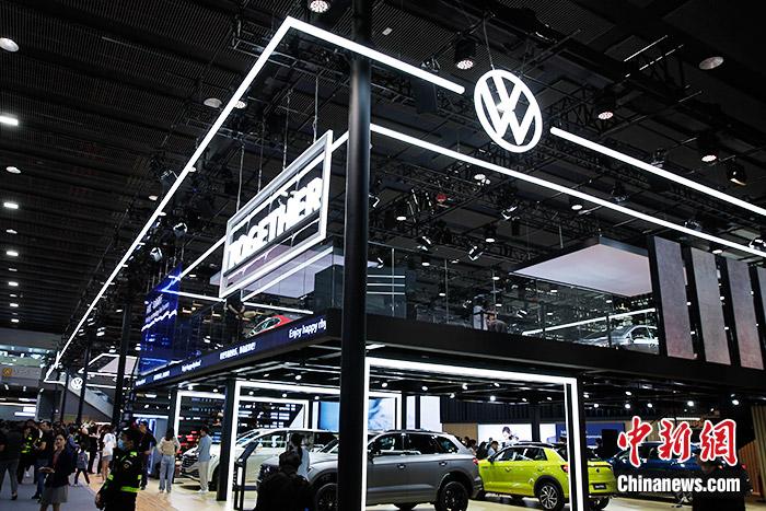 11月17日,上汽大众汽车有限公司销售与市场执行副总经理、上海上汽大众汽车销售有限公司总经理俞经民(中间)参加广州车展展台活动。 上汽大众 供图