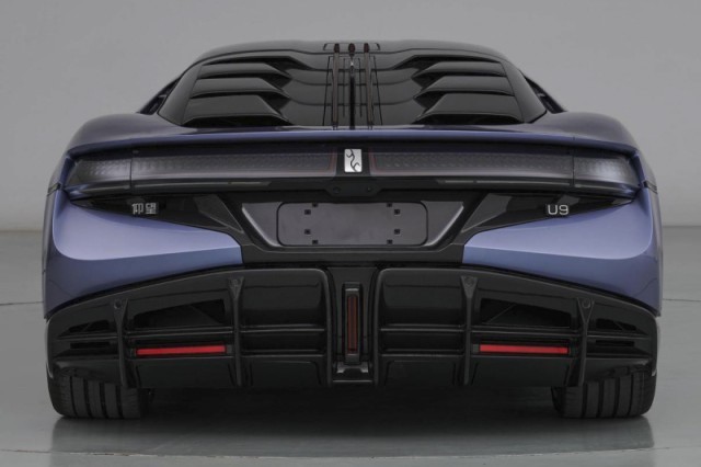 仰望U9在保留超跑经典设计元素同时整体视觉感受未来科技感十足。前脸两侧造型锐利的C字形灯组点亮后极具辨识度,向前俯冲的车头姿态结合前唇部位夸张的空气动力学组件则使其更具战斗气息。新车侧面造型较为凌厉,略微向外凸出的轮拱搭配大尺寸五辐式轮圈和高性能刹车系统运动感十足。与此同时,仰望U9还在车侧加入导风口设计并配备专属侧裙组件,进一步增强车辆空气动力学及动态操控表现。值得一提的是,该车还采用了“蝴蝶门”设计。
