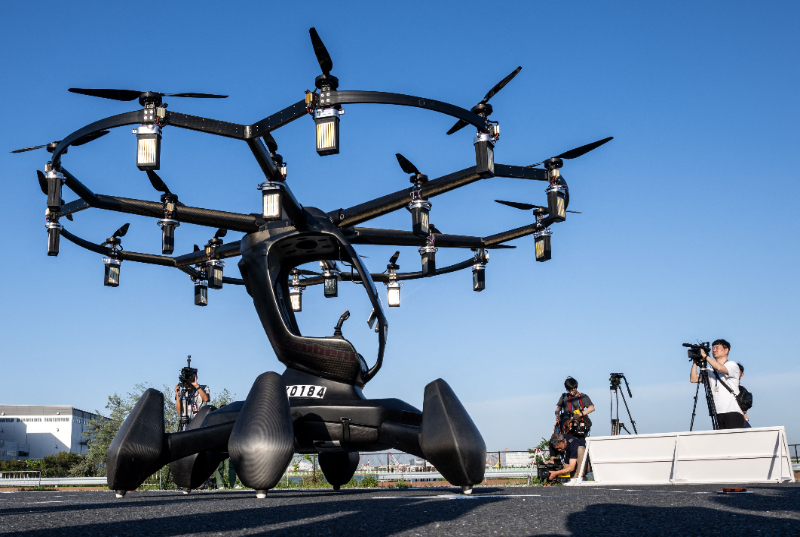 5月17日,人们在日本东京拍摄“飞行汽车”Hexa。新华社/法新