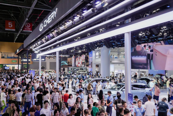 图为2024成都国际车展上人头攒动的奇瑞展区