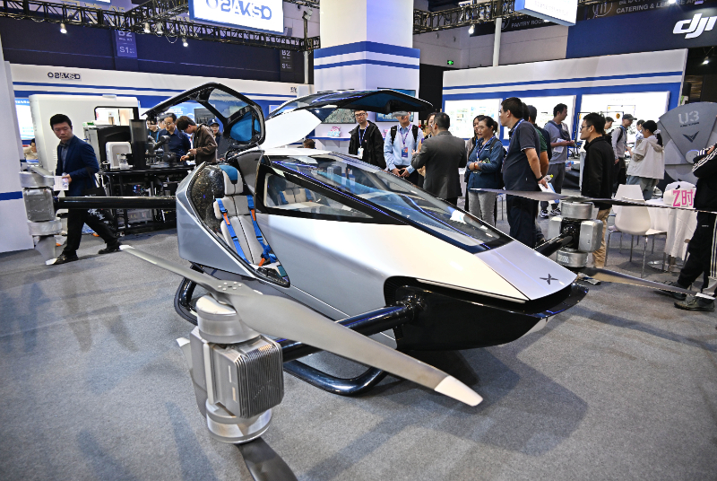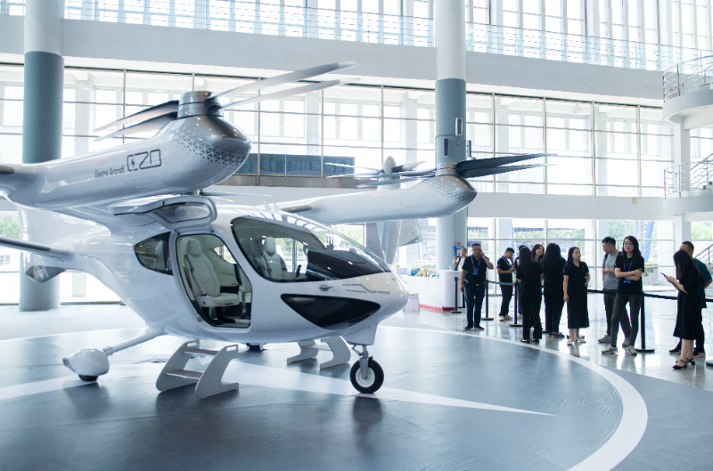 9月6日,观众在2024低空经济发展大会创新成果展区了解一款电动垂直起降飞行器。新华社记者 傅天 摄