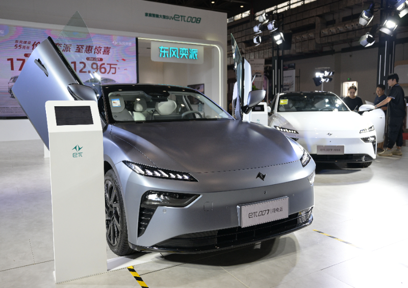 在车展上东风奕派展台拍摄的“eπ007”。(9月16日摄)新华社记者 蒲晓旭 摄