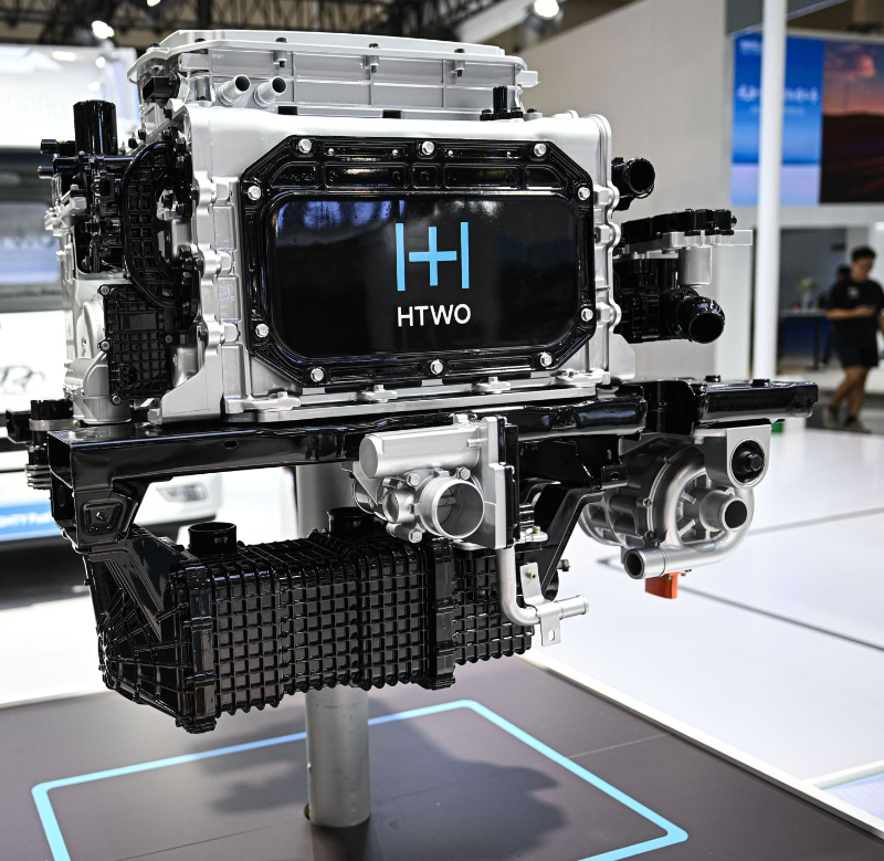 图为在现代汽车集团展台拍摄的氢燃料电池系统。新华社记者 蒲晓旭 摄