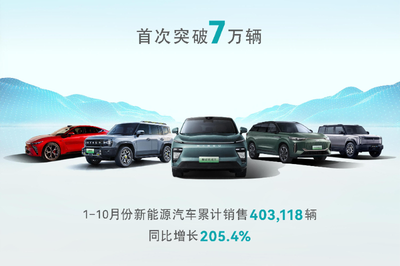 奇瑞控股集团发布10月销量快报,集团总销量272,155辆,同比增长35.9%,其中新能源销量71,330辆,同比增长342.1%,首次突破7万辆大关,创造单月新能源销量历史新高。