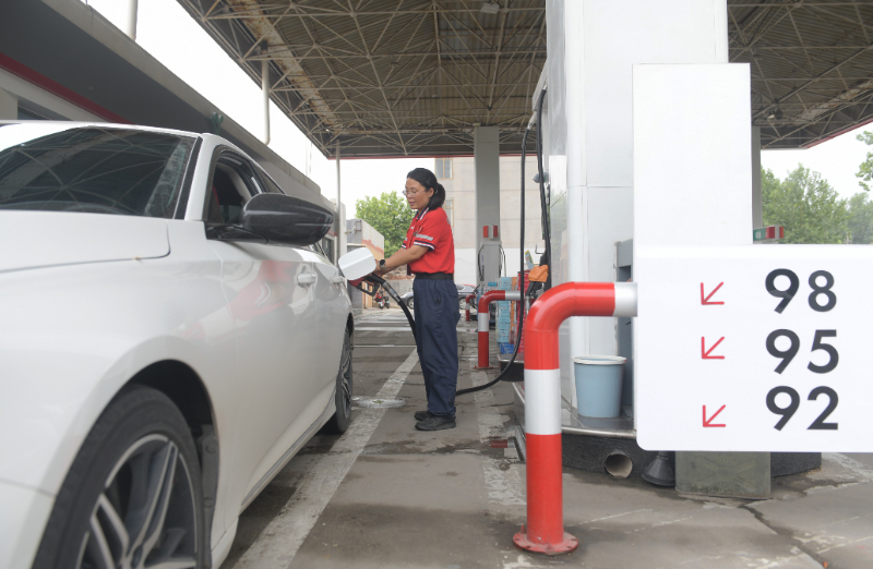 (资料图片)一家加油站的工作人员给汽车加油。新华社发(贾敏杰 摄)