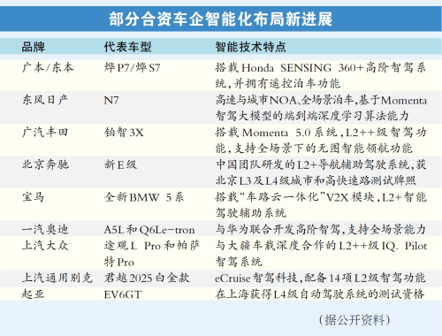 在业内人士看来,这并非偶然。从时间轴上看,在经历了多年“上车困难”、研发成本高等转型阵痛后,合资车企通过加快步伐,与本土科技企业合作,开始在高阶智能驾驶领域迎头赶上,缩小与自主品牌的差距。“从电动车到燃油车,从智驾系统到‘大彩电’,合资车企的智电转型正在提速。”