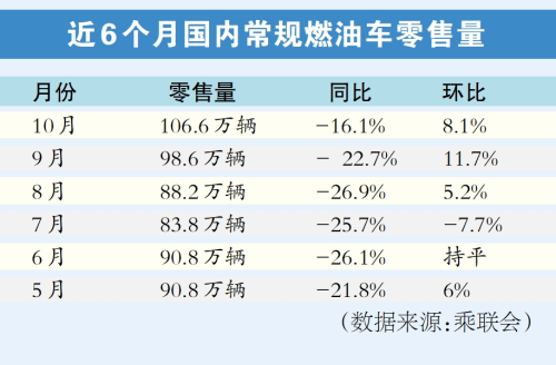 乘联分会发布的数据显示,今年10月常规燃油车零售106.6万辆,环比增长8.1%。乘联会秘书长崔东树表示:“燃油车零售回暖是支撑车市整体向上的基础之一,‘以旧换新’政策释放的换购需求,更在一定程度上带动燃油车销量的增长。”值得注意的是,2025年补贴政策或仍将持续,这对油车也是很好的提振销量的机会。