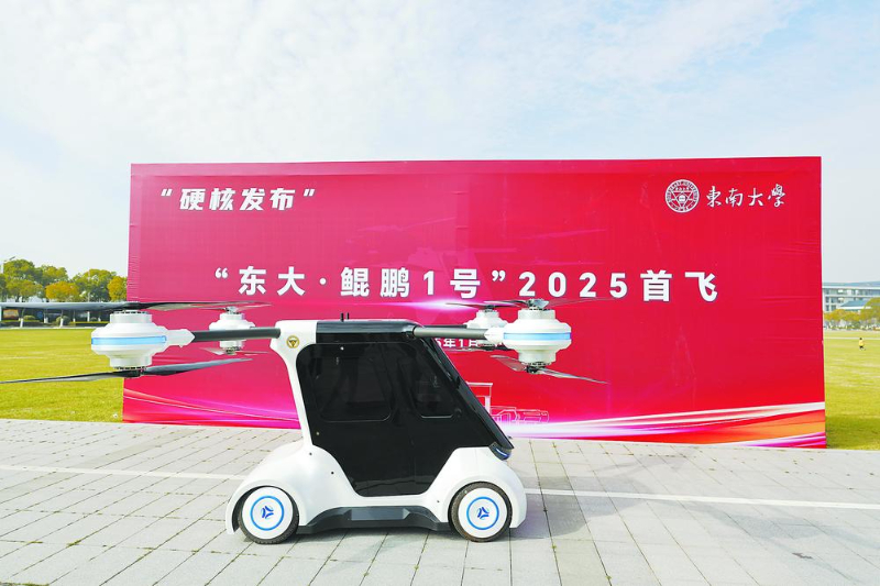 1月1日,东南大学发布了由其科研团队自主研发的国内首辆分布式电驱动飞行汽车——“东大·鲲鹏1号”。该飞行汽车是国内首辆全轮转向全轮驱动、四轴八桨构型飞行汽车,也是江苏省首辆陆空一体飞行汽车。