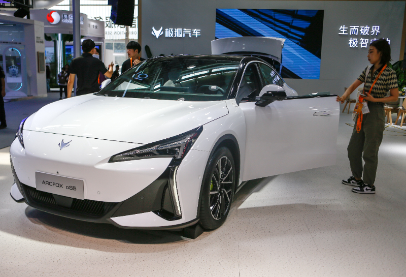2024年9月13日,参会者在服贸会首钢园会场参观极狐新能源汽车。新华社记者 丁洪法 摄