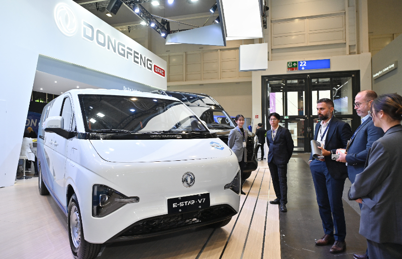 (资料图片)2024年9月16日,在德国汉诺威国际交通运输博览会媒体预展上,人们在东风汽车展区参观E-STAR V7商用车。新华社记者 任鹏飞 摄