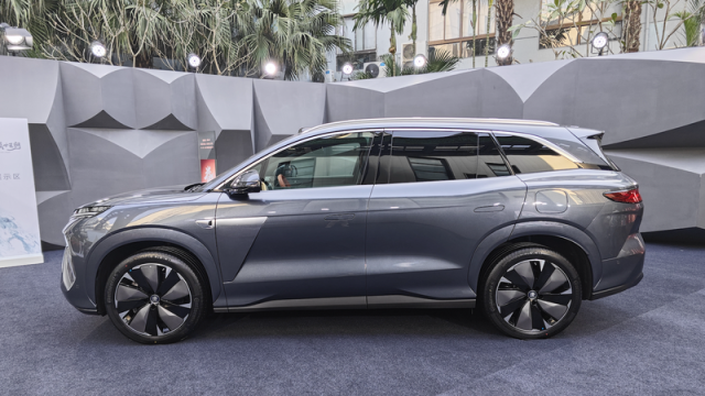 车身侧面线条流畅自然,如书法笔锋般划过前门,展现出简约、纯粹的视觉效果,同时呈现出流畅、大气、厚重的车身观感。前门和车尾保险杠两侧位置各有一道导风口设计,相互呼应,自然协调,不仅提升了车辆的运动感,还能有效降低风阻。此外,隐藏式车门把手和低风阻轮圈,进一步降低了风阻系数,为车辆营造出强烈的科技感与年轻运动氛围。此外,车身的线条在光影的照耀下,呈现出丰富的变化,凸显出车辆的肌肉感和立体感。车身尺寸方面新车长宽高分别为5040*1996*1760mm,轴距2950mm。