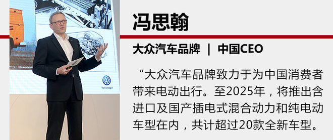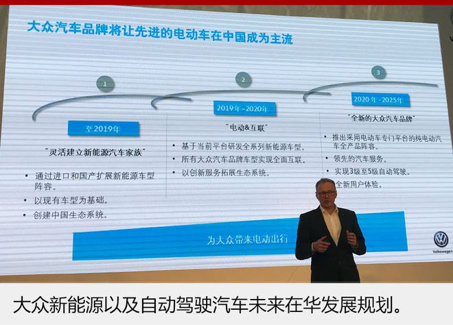 第三阶段是在2020年-2025年之间,在中国市场投放专为电动车打造的MEB平台,推出涵盖进口及国产插电式混合动力和纯电动车型在内,共计超过20款全新车型。到那时,大众汽车品牌将让先进的电动车成为中国的主流车型。