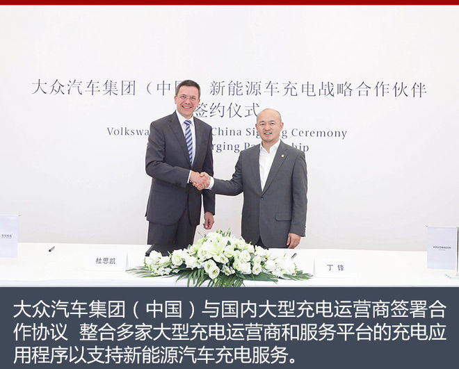 就在今天,大众汽车集团(中国)在北京分别与国内相关充电运营商签署合作协议。未来,大众汽车将携手合作伙伴在中国市场为更加一体化的充电服务提供支持。大众汽车集团(中国)的新能源汽车客户将通过应用程序享受便捷的充电服务。当消费者在全国各地通过星星充电和特来电所提供的充电桩,或通过e充网所开放的北京市地方充电设施为车辆充电时,并不需要切换至各方分别提供的应用程序,仅需通过大众汽车集团(中国)所提供的应用程序即可享受一站式的车辆充电服务。