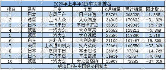 上半年,国内A级车累计销售227.55万辆,同比下降27.72%,其中德系和日系分别有四款车型进入榜单前十,呈现出分庭抗礼之势。许海东分析,在经济困难的情况下,消费者会更加看中低故障率和省油等优势,进而选择德系、日系等品牌。