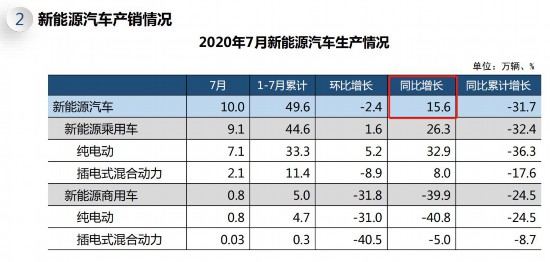 新能源汽车累计产销49.6万辆和48.6万辆,同比分别下降31.7%和32.8%,降幅比1-6月继续收窄。在新能源汽车主要品种中,与上年同期相比,纯电动汽车和插电式混合动力汽车产销同比均呈下降,降幅均比1-6月呈一定收窄。