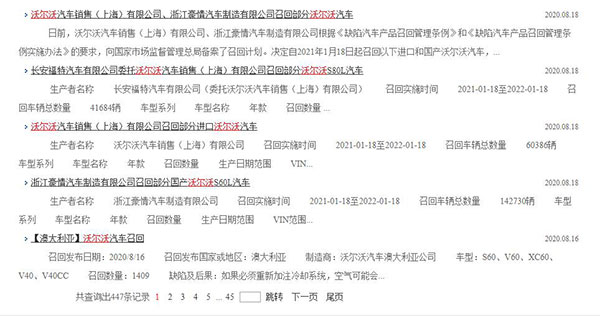 日前,沃尔沃汽车销售(上海)有限公司,浙江豪情汽车制造有限公司根据《缺陷汽车产品召回管理条例》和《缺陷汽车产品召回管理条例实施办法》的要求,向国家市场监督管理总局备案了召回计划。决定自2020年9月4日起召回以下车辆,共计135316辆。